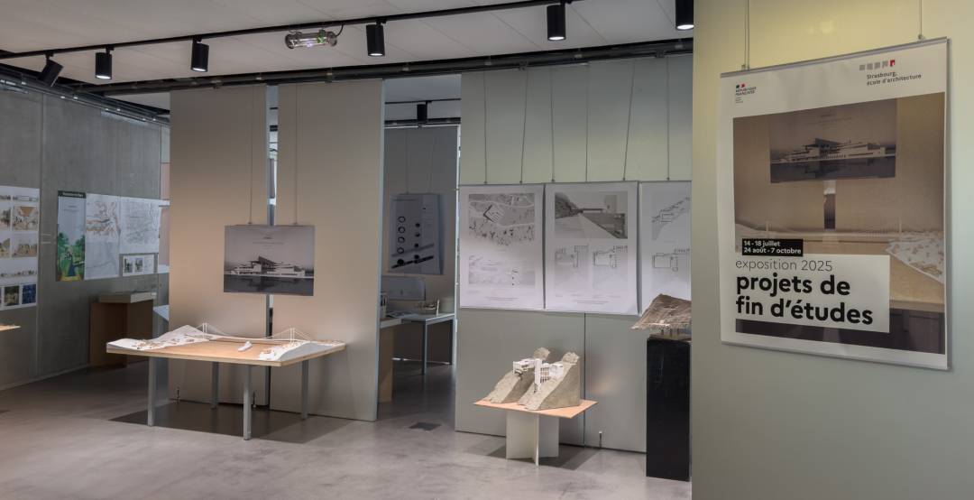 Une selection des projets de fin d’études, soutenus en juillet 2025, est visible dans le hall de l’ENSAS jusqu’au 7 octobre.